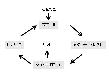 在PPP項(xiàng)目的資費(fèi)設(shè)計(jì)中,需要平衡以下目標(biāo):(1)目標(biāo)服務(wù)標(biāo)準(zhǔn)及相關(guān)成本;(2)公眾消費(fèi)者的支付意愿及能力;(3)成本回收方式;(4)社會(huì)資本的經(jīng)濟(jì)要求(投資利潤(rùn)率);(5)對(duì)政府補(bǔ)貼的需求及得到的可能性。各因素的正確組合可以通過(guò)項(xiàng)目模型的重復(fù)優(yōu)化來(lái)確定。資費(fèi)設(shè)計(jì)循環(huán)過(guò)程如下圖所示: