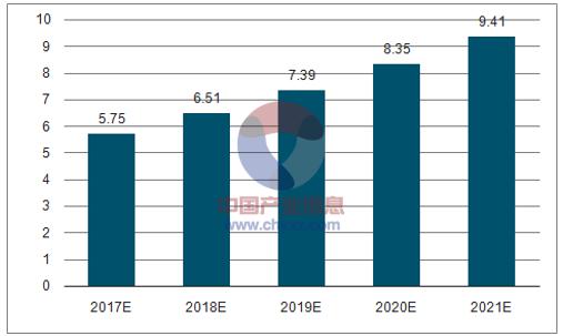 據(jù)估算,2017 年中國(guó)節(jié)能環(huán)保產(chǎn)業(yè)產(chǎn)值將達(dá)到 5.75 萬億元,未來五年(2017-2021)年均復(fù)合增長(zhǎng)率約為 13.10%,2021年中國(guó)節(jié)能環(huán)保產(chǎn)業(yè)產(chǎn)值將達(dá)到 9.41萬億元。