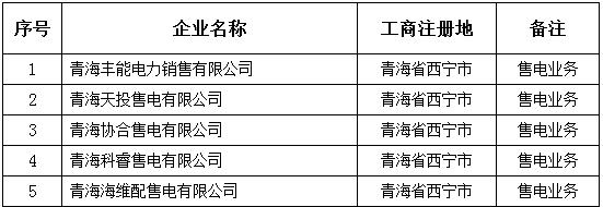 公示期間,任何單位和個人如有異議,可采用來電、來信、來訪等方式向青海電力交易中心有限公司反映情況。本次公示售電公司目錄如下: