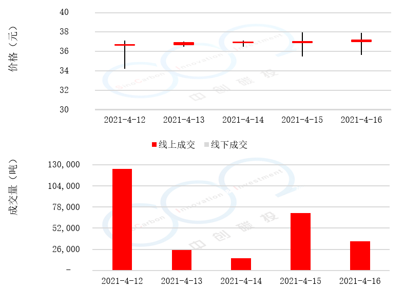 線上成交價(jià)最低為4.94(產(chǎn)品SZEA-18),最高為10.82元(產(chǎn)品SZEA-13),平均碳價(jià)為7.00元(平均碳價(jià)為各產(chǎn)品價(jià)格加權(quán)得出)。