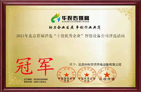 近日,2021年北京首屆評(píng)選“十佳優(yōu)秀企業(yè)”智能設(shè)備公司評(píng)選活動(dòng)圓滿落幕。此次評(píng)選活動(dòng)中北京中科宇杰節(jié)電設(shè)備有限公司摘得桂冠。