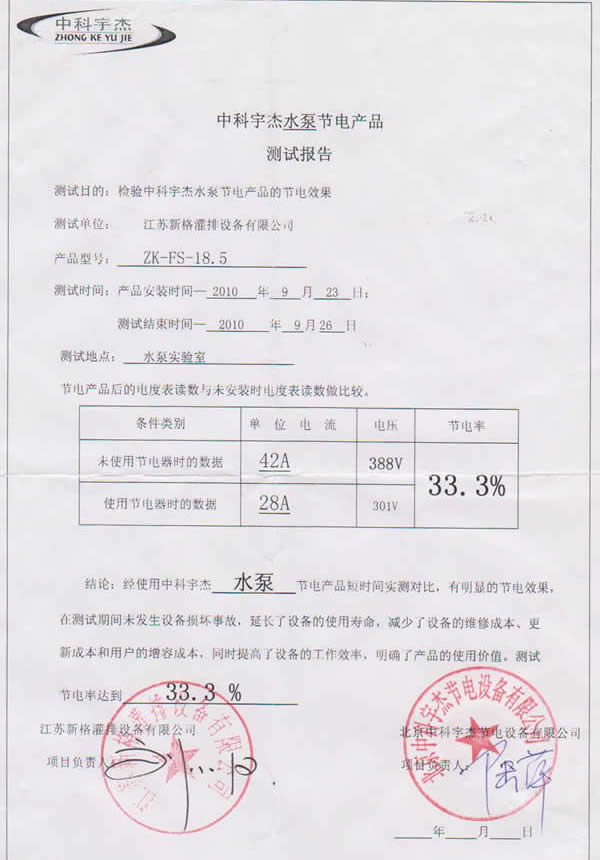 經(jīng)過嚴格的測試和同期的用電對比,節(jié)能效率達到33.3%,節(jié)能效率超出了技術(shù)論證的結(jié)果。中科宇杰的技術(shù)實力得到權(quán)威專家的認同。
