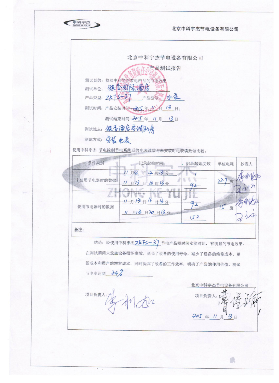 安裝調(diào)試并驗(yàn)收后,通過現(xiàn)場讀表,顯示節(jié)電達(dá)到34%,節(jié)電效果明顯。按質(zhì)保十年計(jì)算,此項(xiàng)節(jié)能工程能為榆林市銀杏國際酒店帶來四百萬以上人民幣的直接經(jīng)濟(jì)效益。