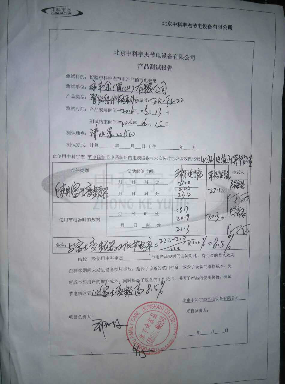 經(jīng)安裝調(diào)試驗收后,與變頻器對比節(jié)電率,發(fā)現(xiàn),中科宇杰的智能保護(hù)節(jié)電系統(tǒng)節(jié)電效果明顯,比變頻器節(jié)能效率高8.5%,不但降低了用能企業(yè)的能耗,該項目還延長了水泵的使用壽命,降低了運行成本。中科宇杰智能節(jié)電系統(tǒng)與傳統(tǒng)變頻器相比,更具節(jié)能優(yōu)勢,不但具有抗電磁干擾能力,還能提高功率因素。節(jié)電降耗也高于傳統(tǒng)變頻器,到達(dá)很好的節(jié)能效果。
