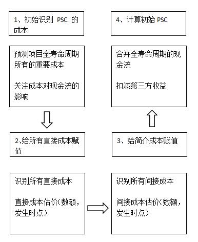 初始PSC代表了傳統(tǒng)采購模式下政府生產(chǎn)和交付參考項(xiàng)目的基本成本。初始PSC的計算是一個復(fù)雜而嚴(yán)謹(jǐn)?shù)倪^程,需要對所成本進(jìn)行界定和分類,預(yù)計可能發(fā)生的時間和數(shù)額,再進(jìn)行全面的整理和歸納,最后實(shí)現(xiàn)凈現(xiàn)值的計算。